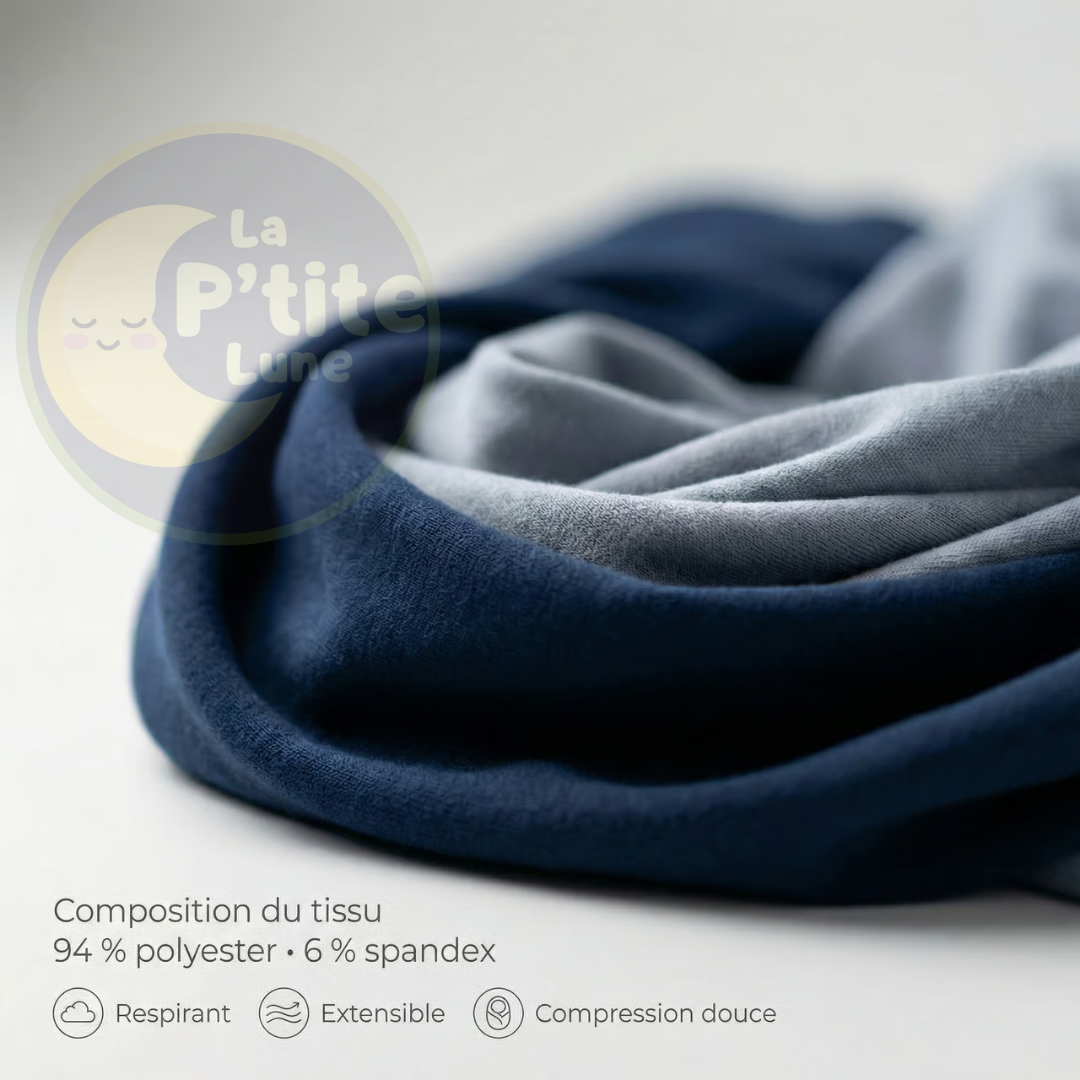 Ce choix est volontaire : il permet une compression douce, respirante et homogène, indispensable à l’effet enveloppant et rassurant recherché pour le sommeil des enfants.