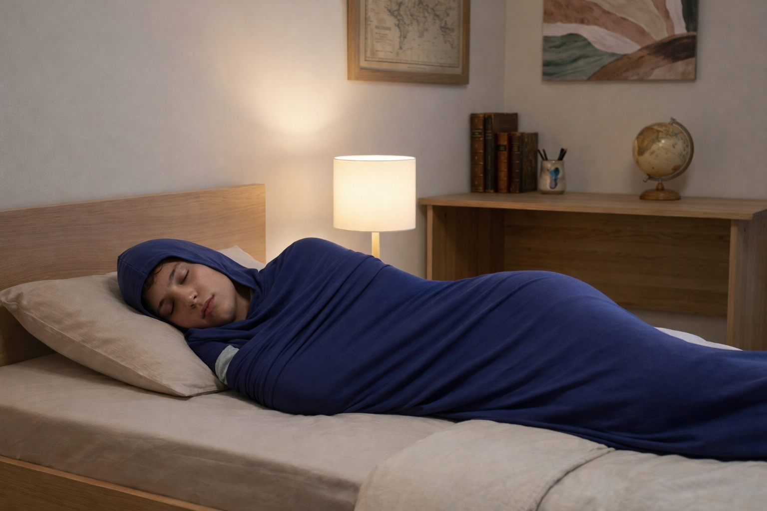 La couverture enveloppante apporte une sensation de maintien rassurante, proche d’un cocoon.